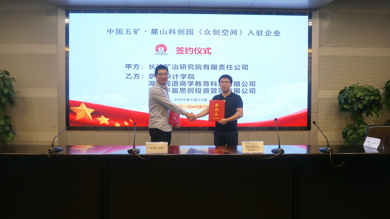 4月29日,五矿麓山科创园众创空间与首批入驻的优质服务企业和科技创新团队在长沙矿冶院学术楼八会议室举行签约仪式。